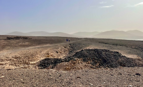 Vervolgens reden we verder naar het vissersdorpje Ajuy voor een koffiestop en vanuit daar wandelden we via onverharde paden naar de Arco de Jurado. Een natuurlijk gevormde rotsboog. Totaal zo'n 7 km, dus goed te doen voor iedereen. Die dag was er sprake van een lichte calima, dus het gaf een heel aparte sfeer aan de foto's. Sowiezo heb je daar het gevoel op de maan te lopen. Geslaagde leuke dag met een groepje Duitsers. Mooie dingen gezien en een niet te lange dag. Rond half 4 weer bij het hotel terug.